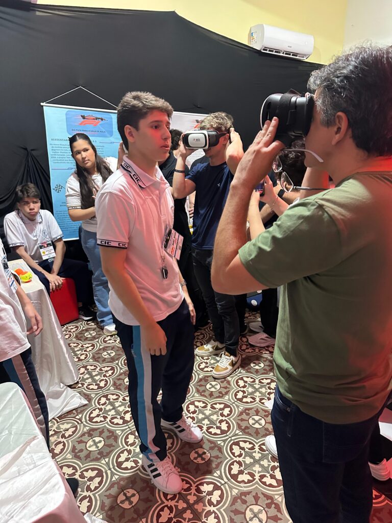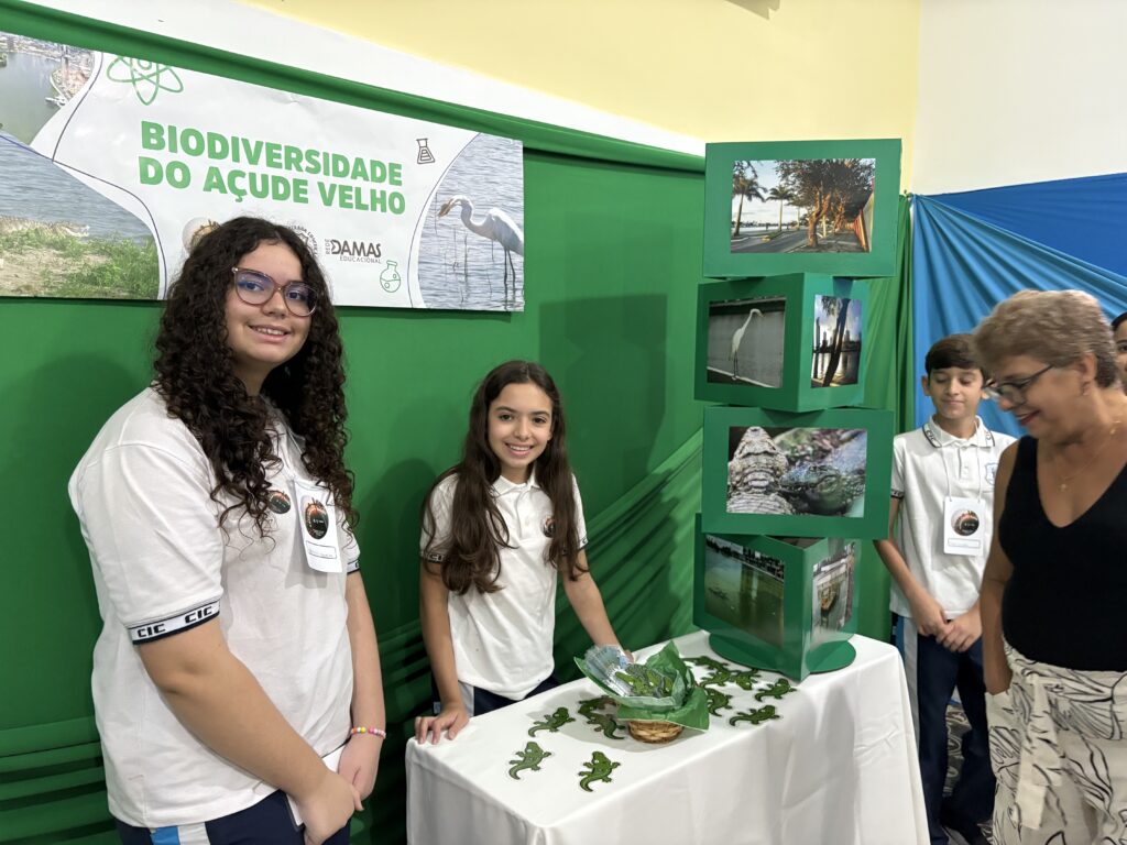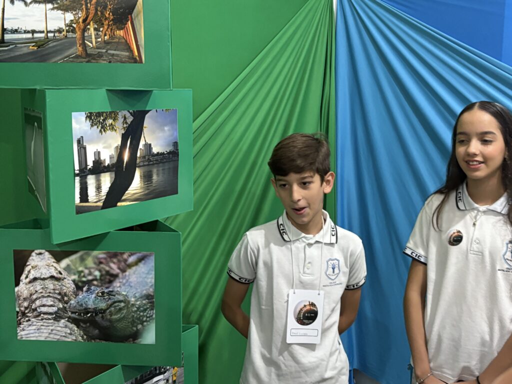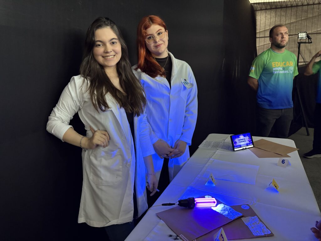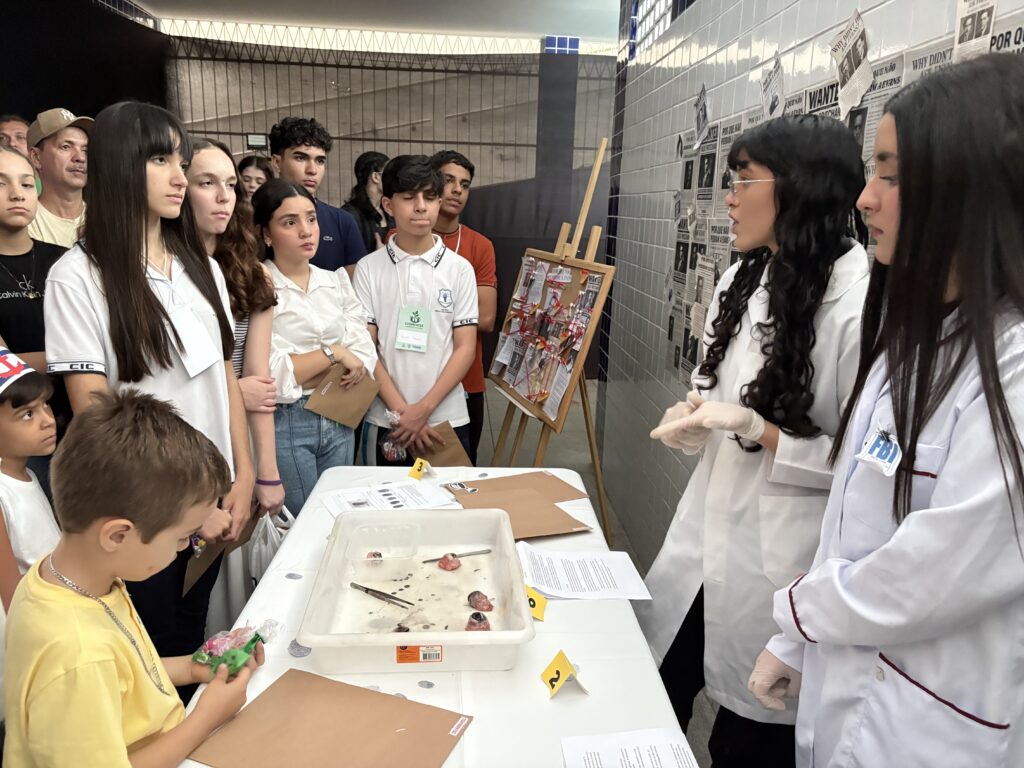 As apresentações da SECCIC tomaram conta dos espaços do CIC Damas, no último sábado (4). Fora do auditório, as turmas do Ensino Fundamental – Anos Finais e Ensino Médio assumiram o protagonismo de levar conteúdos de maneira criativa e participativa para os nossos visitantes.