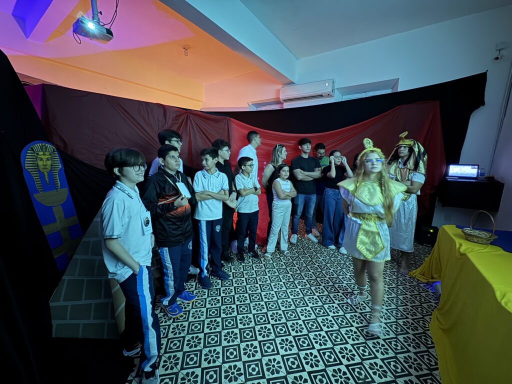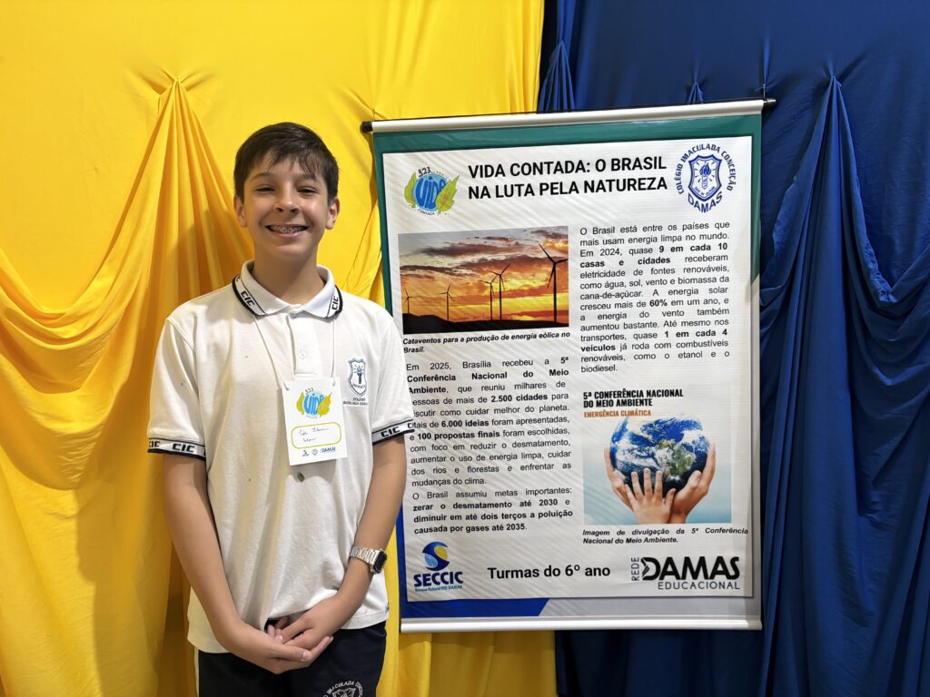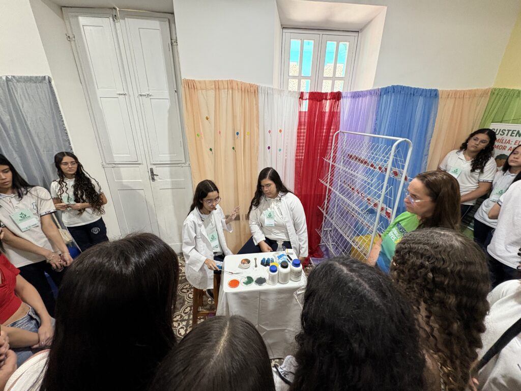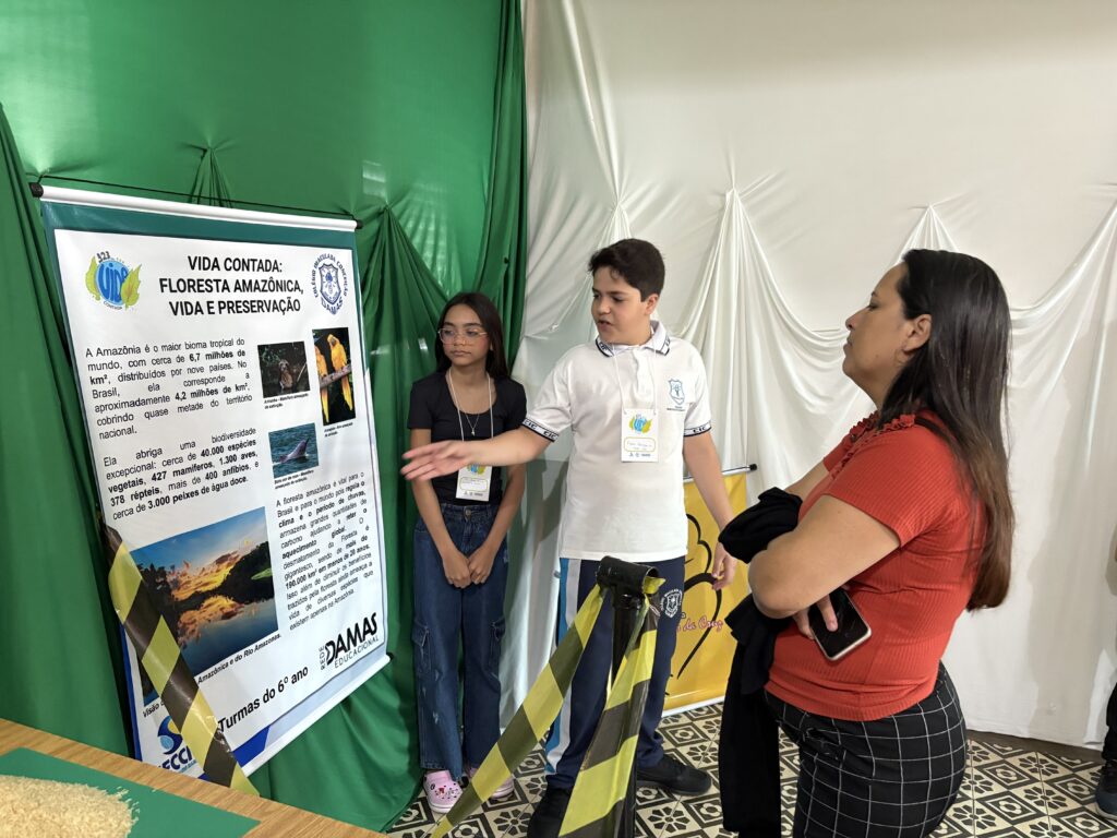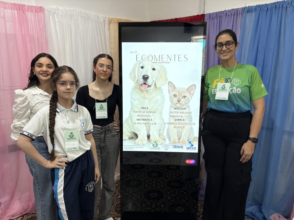 As apresentações da SECCIC tomaram conta dos espaços do CIC Damas, no último sábado (4). Fora do auditório, as turmas do Ensino Fundamental – Anos Finais e Ensino Médio assumiram o protagonismo de levar conteúdos de maneira criativa e participativa para os nossos visitantes.